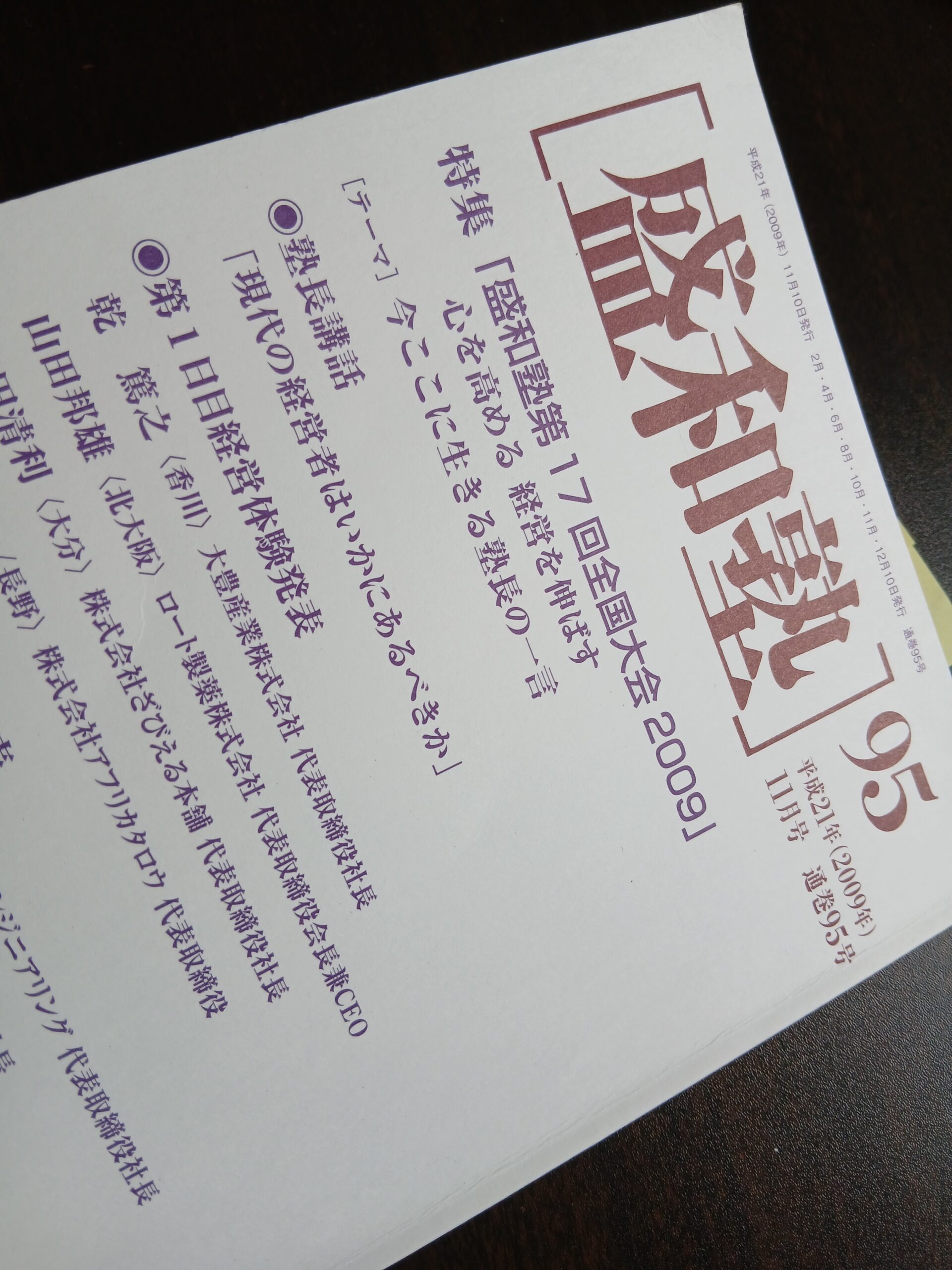 『盛和塾機関誌』97号。ページを開けば、そこ…